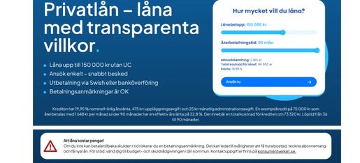 Privatlån på 10 000 till 150 000 kr utan UC.